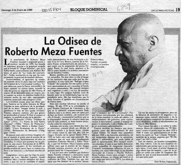 La odisea de Roberto Meza Fuentes [artículo] Juan Rubén Valenzuela.