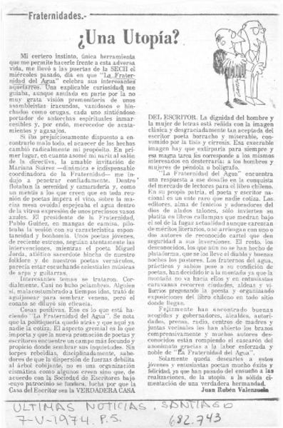 ¿Una utopía? [artículo] Juan Rubén Valenzuela.