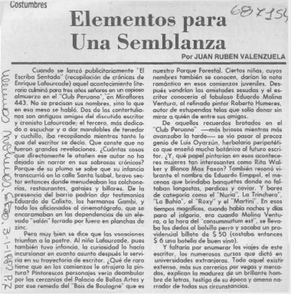 Elementos para una semblanza [artículo] Juan Rubén Valenzuela.