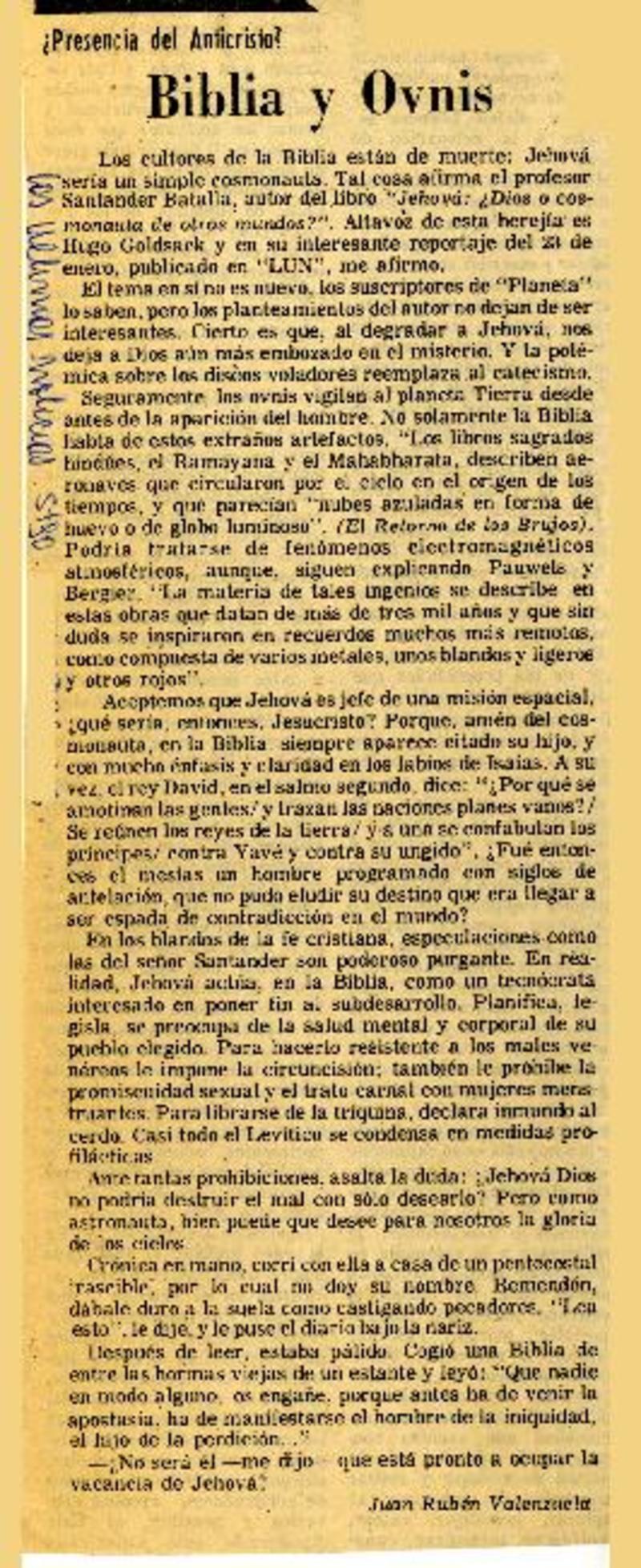 Biblia y ovnis [artículo] Juan Rubén Valenzuela.