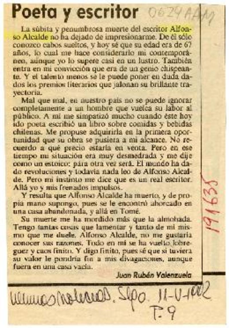 Poeta y escritor [artículo] Juan Rubén Valenzuela.