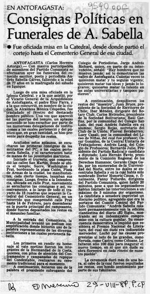 Consignas políticas en funerales de A. Sabella [artículo] Carlos Herrera Astorga.