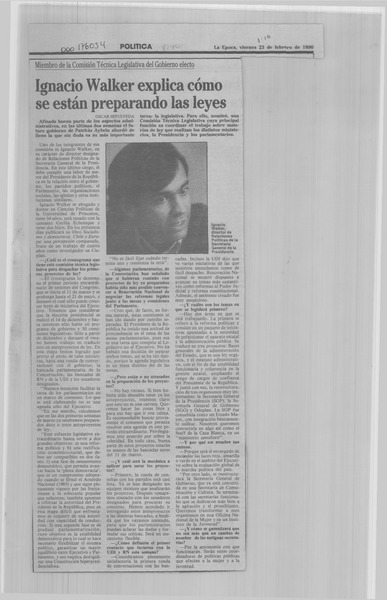 Ignacio Walker explica cómo se están preparando las leyes [artículo] Oscar Sepúlveda.