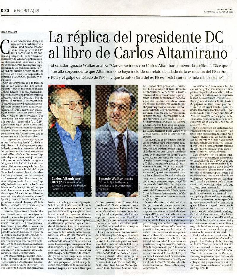 La réplica del presidente DC al libro de Carlos Altamirano [artículo] Ignacio Walker.