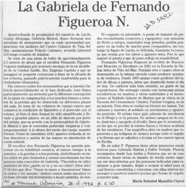 La Gabriela de Fernando Figueroa N. [artículo] María Soledad Mansilla Clavel.