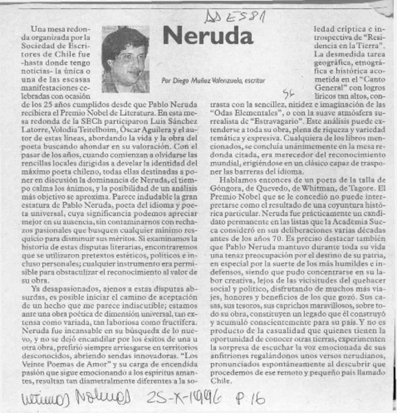 Neruda [artículo] Diego Muñoz Valenzuela.
