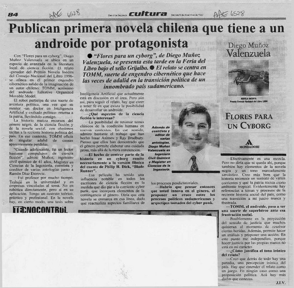 Publican primera novela chilena que tiene a un androide por protagonista [artículo] J. I. V.