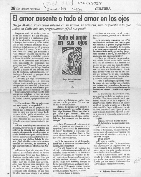 El amor ausente o todo el amor en los ojos [artículo] Roberto Rivera Vicencio.