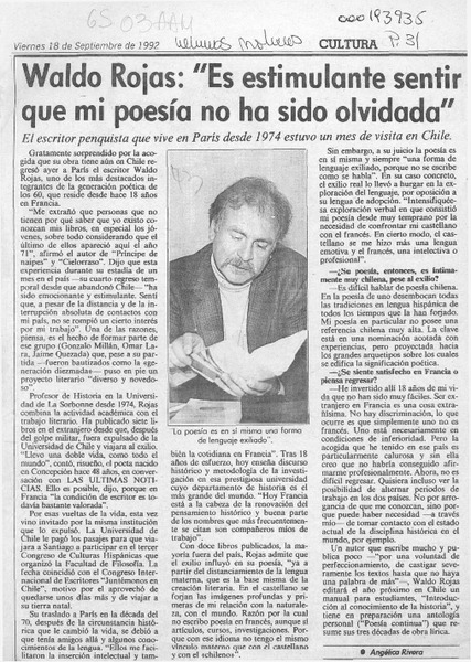Waldo Rojas, "Es estimulante sentir que mi poesía no ha sido olvidada" [artículo] Angélica Rivera.