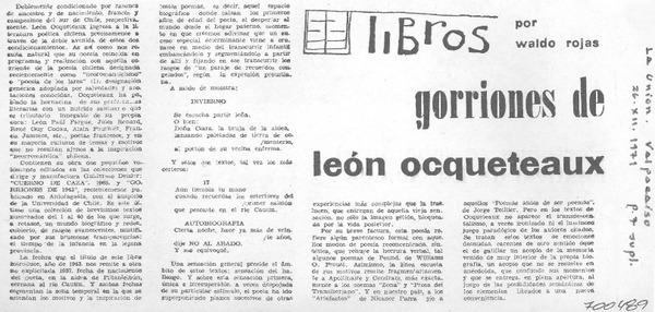Gorriones de León Ocqueteaux [artículo] Waldo Rojas.