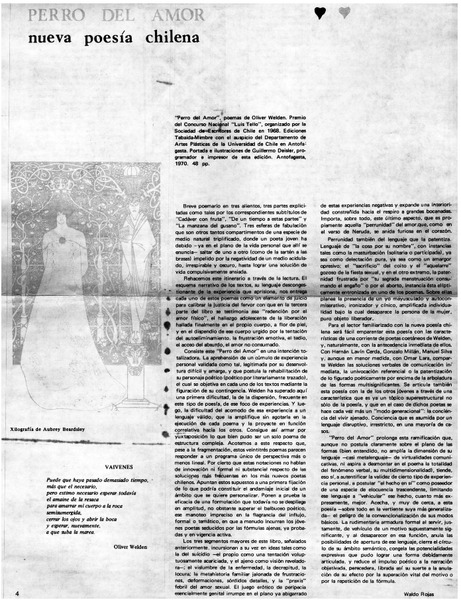 Perro del amor nueva poesía chilena [artículo] Waldo Rojas.