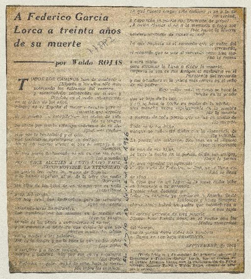 A Federico García Lorca a treinta años de su muerte [artículo] Waldo Rojas.