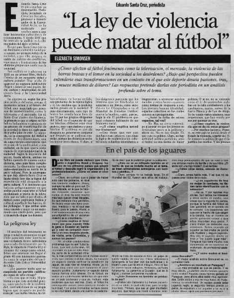 "La ley de violencia puede matar al fútbol" [artículo] Elizabeth Simonsen.