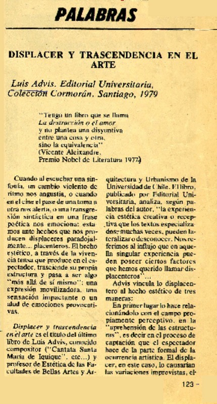 Autores chilenos - Advis, Luis - Dispalcer y trascendencia en el arte