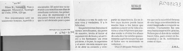Autores chilenos - Pérez Raggi, Nelson Jesús - Ven y sígueme