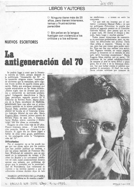 Autores chilenos - Parra, Marco Antonio de la - Oses, Darío - Peña Muñoz, Manuel - Meza, María Eugenia - Muñoz, Francisco Javier