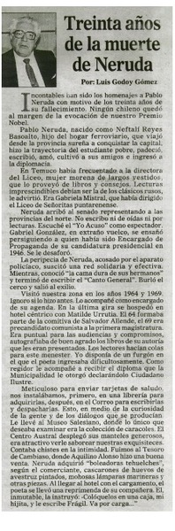 Treinta años de la muerte de Neruda [artículo] Luis Godoy Gómez.