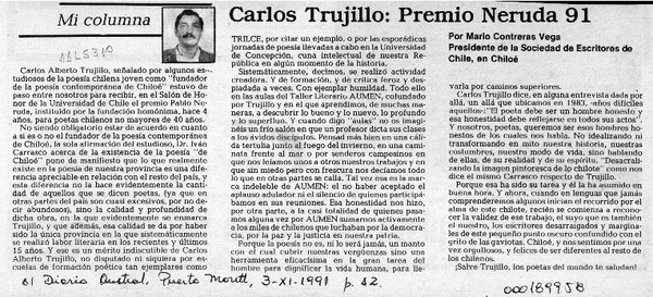 Carlos Trujillo, Premio Neruda 91 [artículo] Mario Contreras Vega.