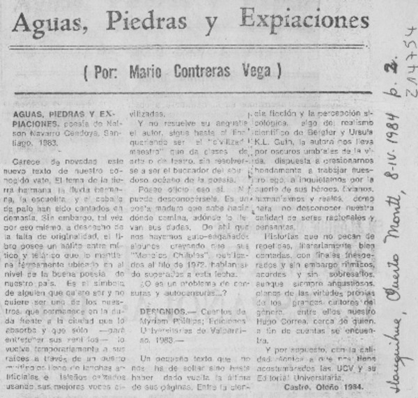 "Aguas, piedras y expiaciones" [artículo] Mario Contreras Vega.