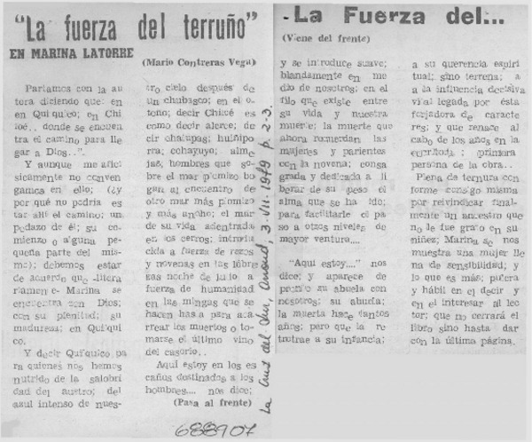 La fuerza del terruño" en Marina Latorre [artículo] Mario Contreras Vega.