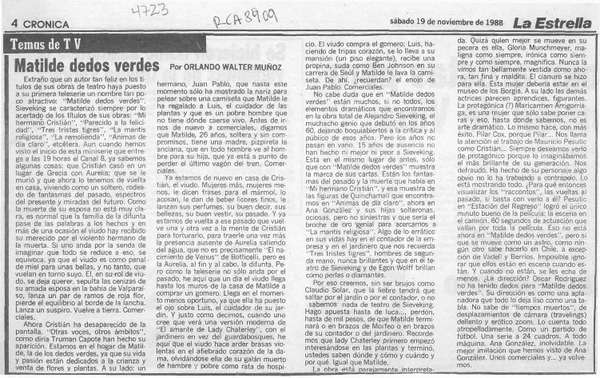 Matilde dedos verdes [artículo] Orlando Walter Muñoz.