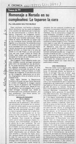 Homenaje a Neruda en su cumpleaños, le taparon la cara [artículo] Orlando Walter Muñoz.