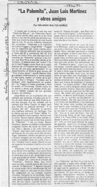 "La palomita", Juan Luis Martínez y otros amigos [artículo] Orlando Walter Muñoz.