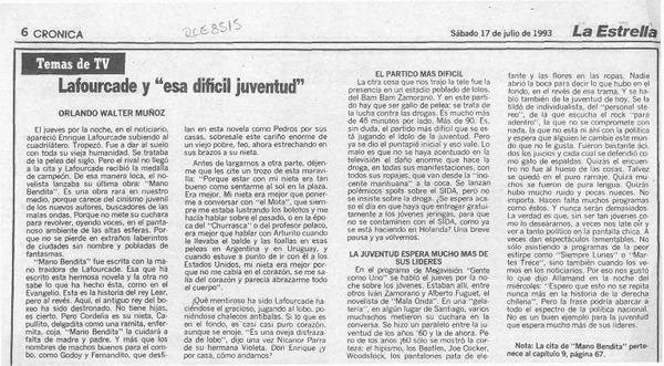 Lafourcade y "esa difícil juventud" [artículo] Orlando Walter Muñoz.