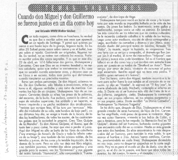 Cuando don Miguel y don Guillermo se fueron juntos en un día como hoy [artículo] Orlando Walter Muñoz.