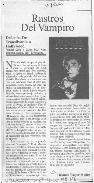 Rastros del vampiro [artículo] Orlando Walter Muñoz.