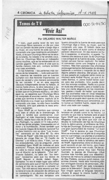 "Vivir así" [artículo] Orlando Walter Muñoz.