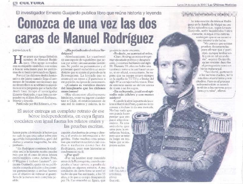 Conozca de una vez las dos caras de Manuel Rodríguez (entrevista) [artículo] Jazmín Lolas E.