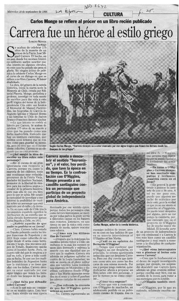 Carrera fue un héroe al estilo griego [artículo] Loreto Novoa.