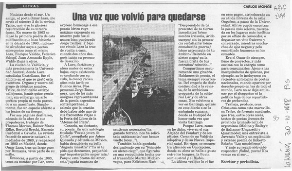 Autores chilenos - Entrevistas - Monge, Carlos