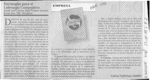 Estrategias para el lideragzo competitivo [artículo] Carlos Valdivieso Ahnfelt.