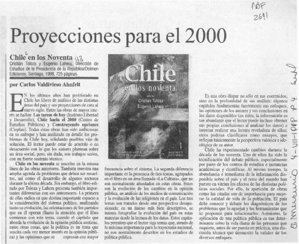 Proyecciones para el 2000 [artículo] Carlos Valdivieso Ahnfelt.