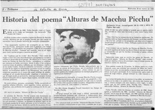 Historia del poema "Alturas de Macchu Picchu" [artículo] Bellamín Silva.