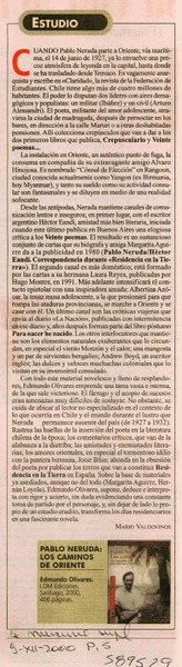 Pablo Neruda, los caminos de oriente [artículo] Mario Valdovinos