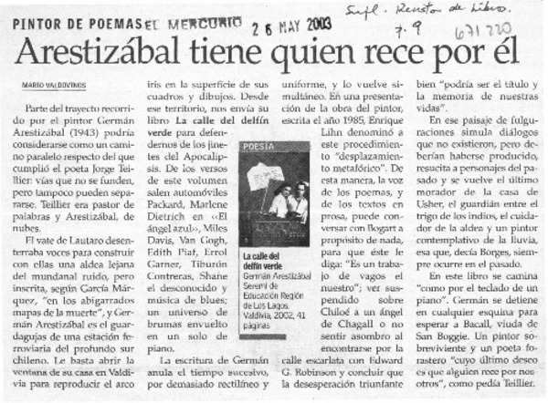 Arestizábal tiene quien rece por él [artículo] Mario Valdovinos.