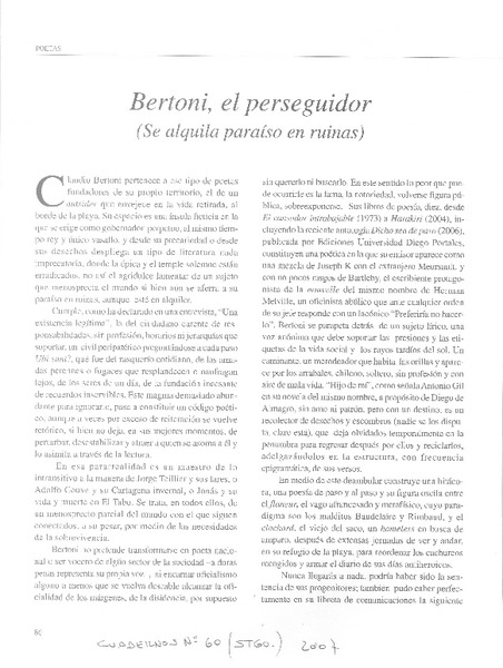 Bertoni, el perseguidor [artículo]Mario Valdovinos.