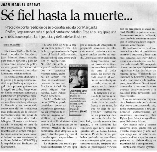 Sé fiel hasta la muerte... [artículo] Mario Valdonvinos.