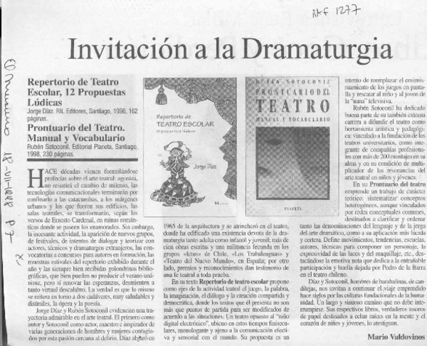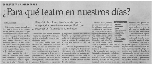 Para qué teatro en nuestros días? [artículo] Mario Valdovinos.