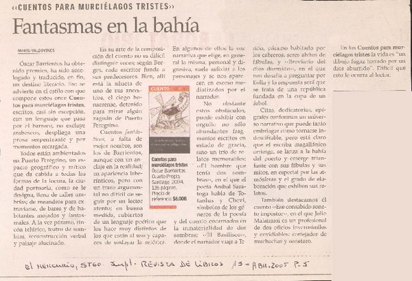 Cuentos para murciélagos tristes : Fantasmas en la bahía [artículo] Mario Valdovinos.
