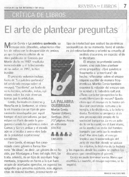 Autores chilenos - Cerda, Martín - Palabra quebrada