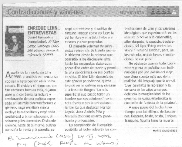 Contradicciones y vaivenes [artículo] Mario Valdovinos.