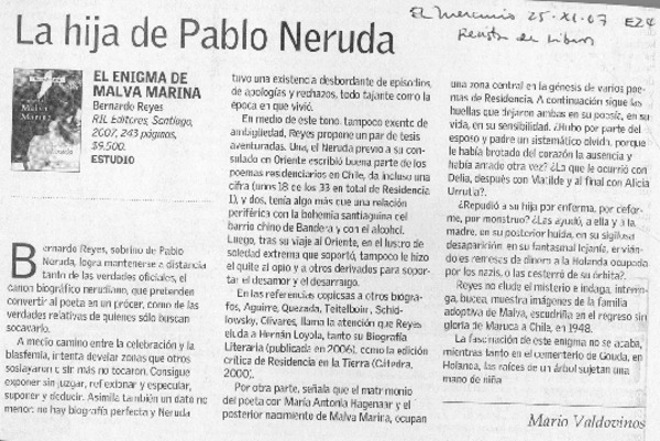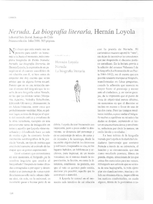 Neruda, la biografía literaria, Hernán Loyola [artículo] Mario Valdovinos.