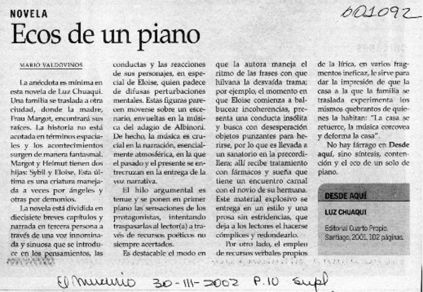 Fantasmas y evocaciones [artículo] Mario Valdovinos.