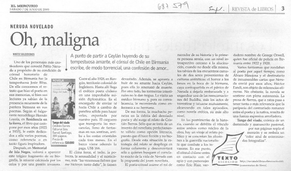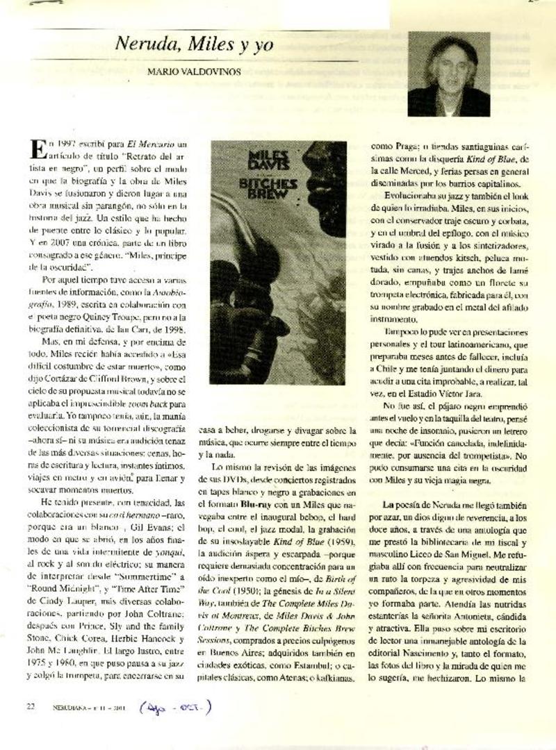 Neruda, Miles y yo [artículo] Mario Valdovinos.