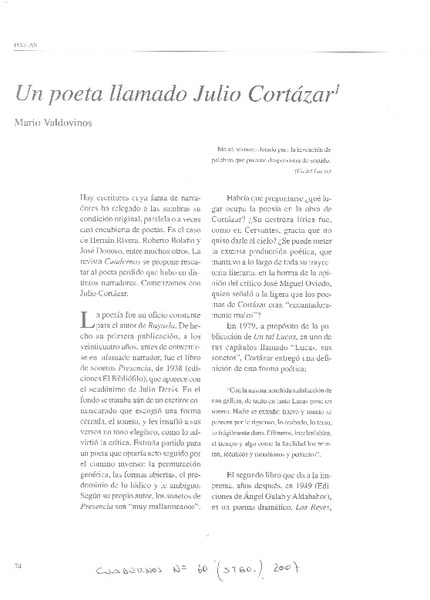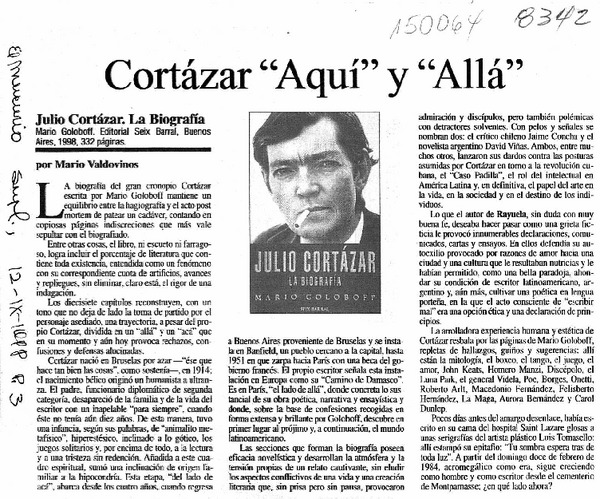 Cortázar "aquí y "allá [artículo] Mario Valdovinos.