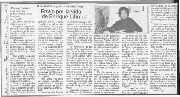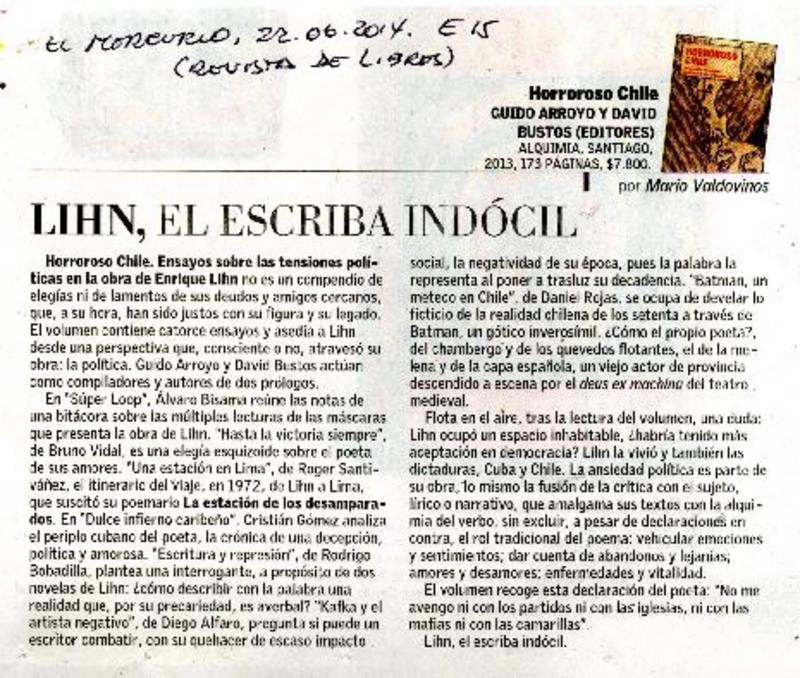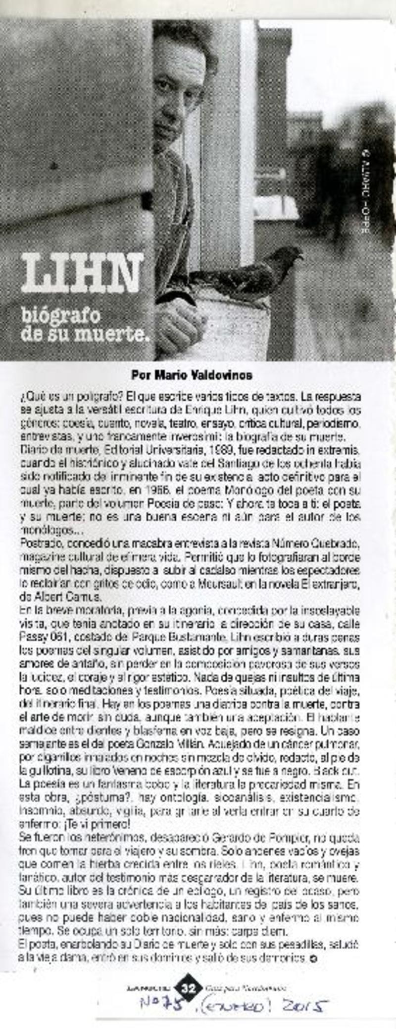 Envío por la vida de Enrique Lihn [artículo] Mario Valdovinos.